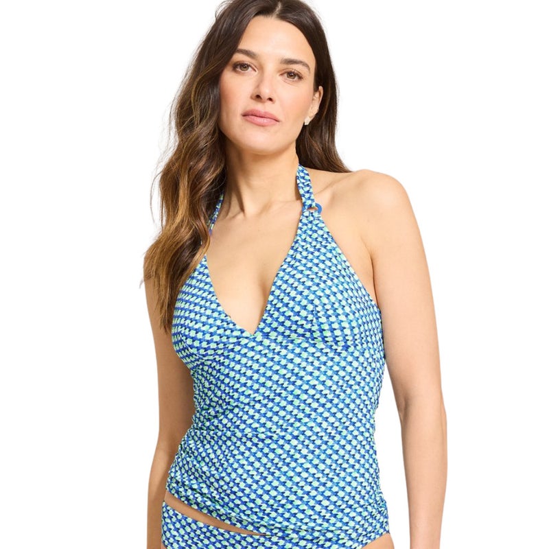 Tommy Bahama Palm Modern Mosaic Tankini Top Women's S Glass Blue Swimsuits TLW55
