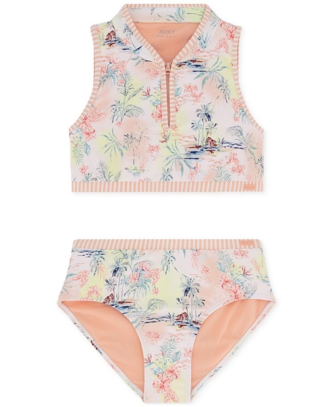 Roxy North Shore 2-Piece Set Girl 7 Peach Nectar Tropical Swimsuit Beach RED1256