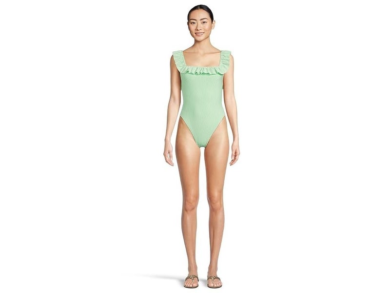 Lilly Pulitzer Aemma Swimsuit Women's 8 Green Ruffle Stretch One Piece GBO948