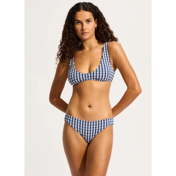 Seafolly Bella Hipster Bottom Women 4 Ultramarine Check Stretch Swimwear GBO2582