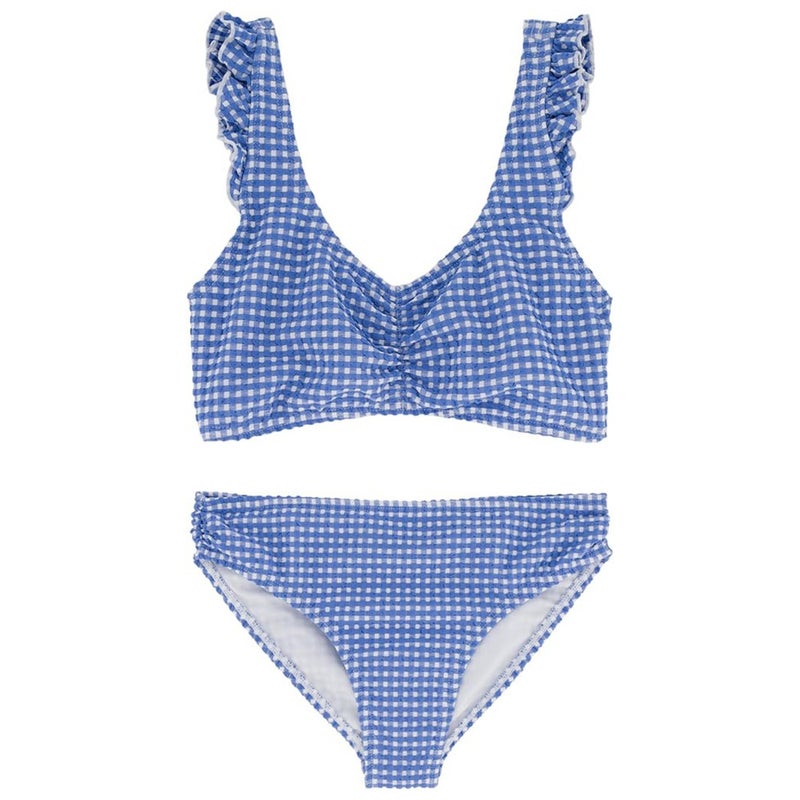 Roxy Two-Piece Bikini Set Girls 14 Blue White Gingham Ruffle Swimwear JDM2356
