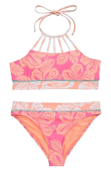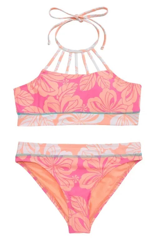 Hobie Honolulu Honey Two-Piece Swimsuit Kids 16 Pink Tropical Swimwear JDM1218