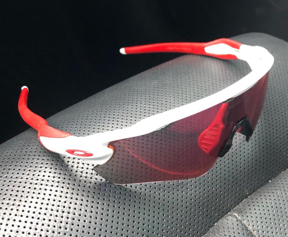 I have a used pair of Oakley Radar EV for sale. They have been used and the lens do have some scratches on them as the picture shows. Overall, they are in good condition.