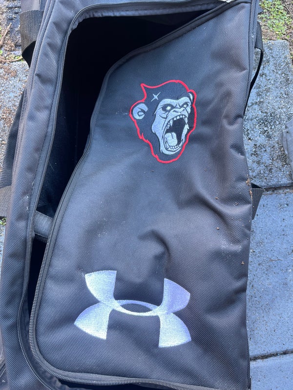 This is a used Under Armour player bag designed for baseball, featuring a black color scheme. The bag is associated with Lamigo Monkey, a team from the CPBL (Chinese Professional Baseball League). It is intended for carrying baseball gear and equipment, suitable for players needing a reliable bag for their essentials. The bag has been used but details on specific wear and tear are not provided. It is a single unit offering practical storage for baseball players.
