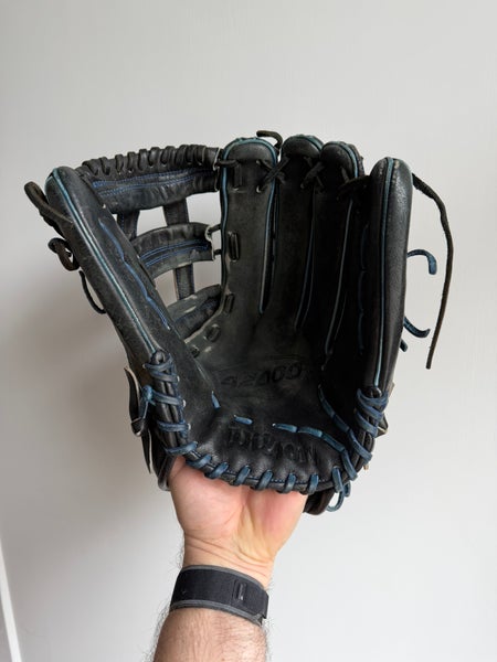 Wilson A2000 1799 SuperSkin 12.75” RHT Outfield Baseball Glove Black Blue (Used)