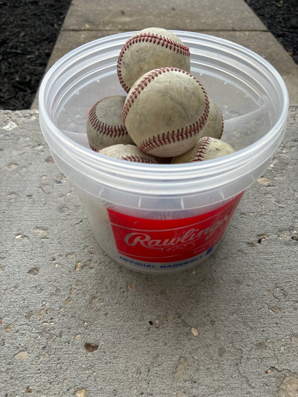 Mix of 10 used baseballs w/ bucket