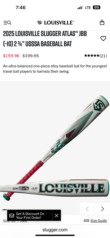 2025 Louisville Slugger atlas USSSA Certified Bat (-10) 18 oz 28" (New)