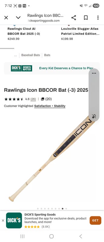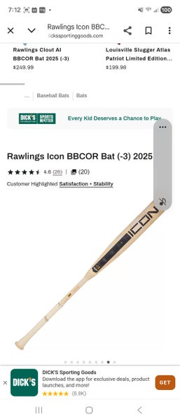 2023 Rawlings Icon Composite Bat BBCOR Certified (-3) Composite 29 oz 32" (Used)