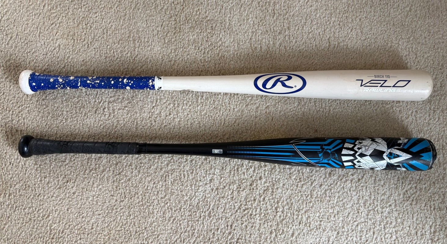 2 bats bundle Custom 2022 DeMarini Voodoo One BBCOR and Rawlings Velo (-3) 29 oz 32"