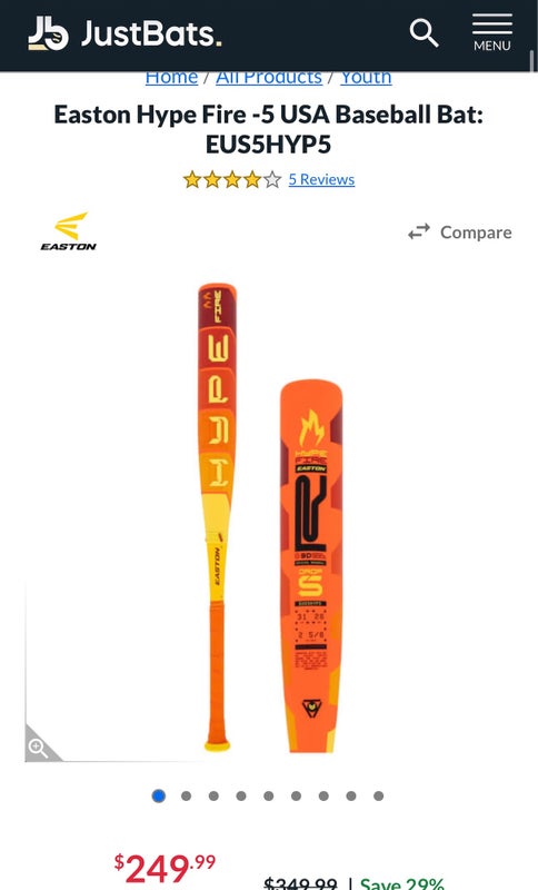 2025 Easton Hype Fire Composite USABat Certified Bat (-5) 26 oz 31" (New)