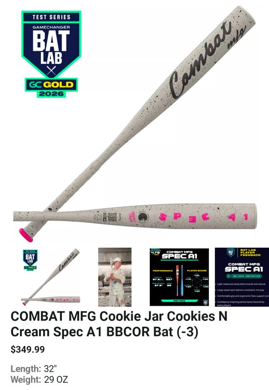 2026 Combat MFG Spec A1 Alloy BBCOR Certified Bat (-3) 29 oz 32" (New)