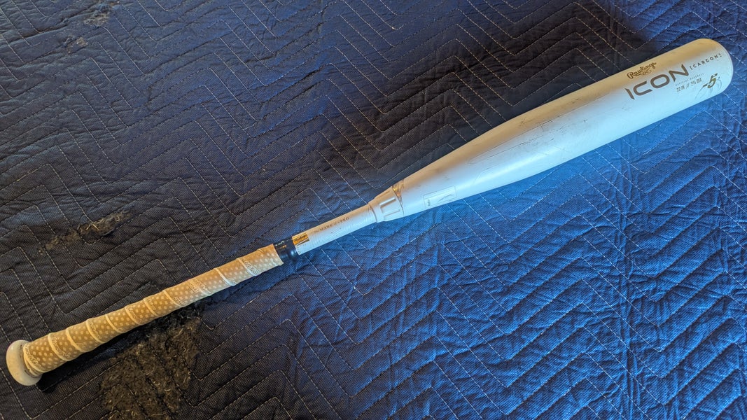 The Rawlings Icon is a two-piece composite baseball bat designed for improved performance with a large barrel and lighter swing. Available in BBCOR, USSSA, and USA models, it replaces the Quatro Pro as Rawlings’ top offering. Its advanced In/Tense composite construction maximizes barrel size, while Zero Loss technology enhances durability and handle flex for a smooth swing.