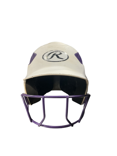 Used Rawlings PURPLE/WHITE HELMET Batting Helmet w/Mask White MD 11834-S000045328
