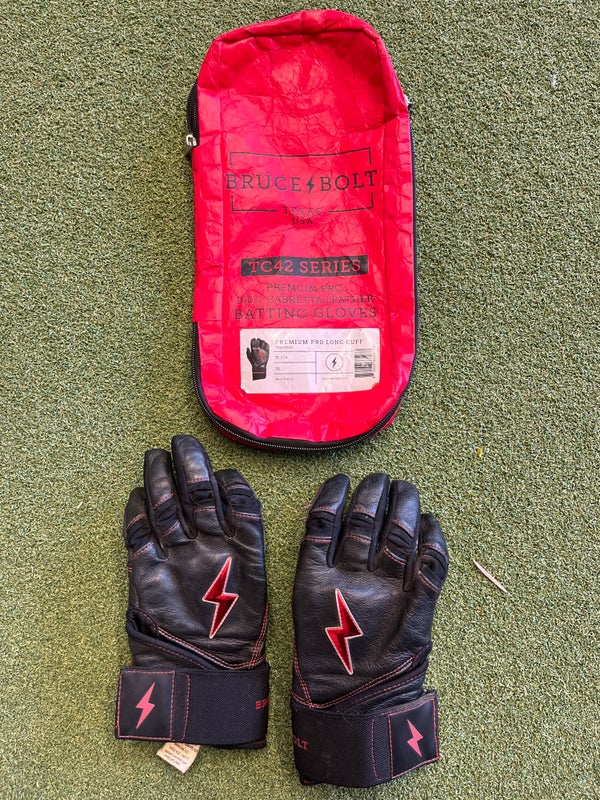 NEGOTIABLE NEW Bruce Bolt Batting Gloves Premium Pro Long Cuff Patriot Series Large