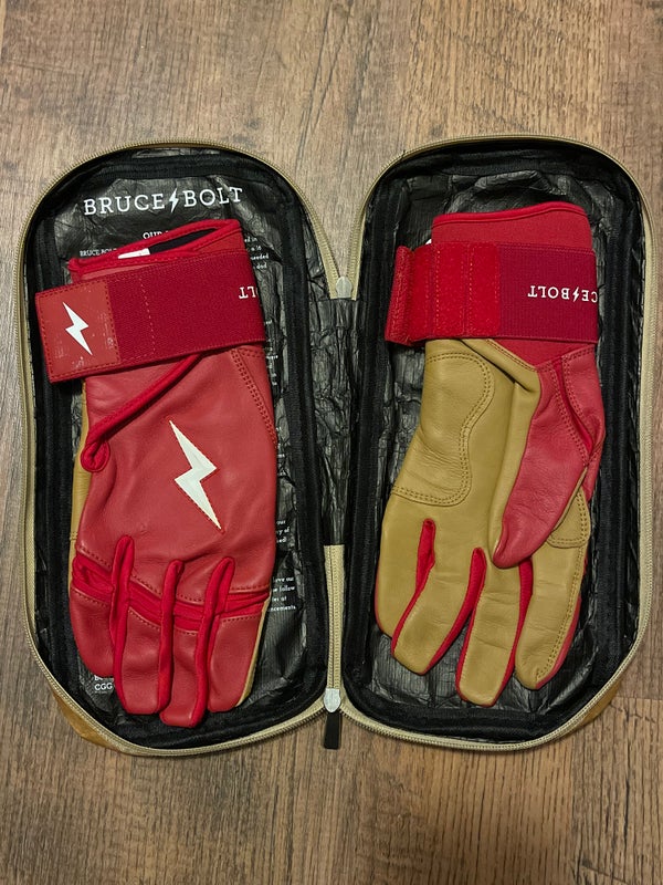 Bruce Bolt Premium Pro Long Cuff Batting Gloves Large - Red