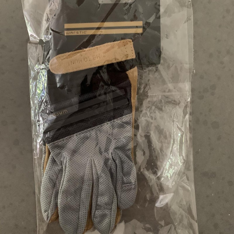 Warstic (youth medium) brand new batting gloves with the “Time to hunt” insignia we like. This came in the other day. It was a replacement for a lost shipment. But it was lost over a month ago and now my kid has to wear a youth large. So these don’t fit him anymore. Anyway, still in packing. Never worn.