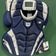 I have helmet and leg guards can bundle for a deal. The Wilson Pro Catcher's Chest Protector is designed to offer reliable upper-body protection for adult catchers during games and practices. Its construction focuses on covering the chest and ribs without restricting mobility, allowing for quick reactions behind the plate. This model features a 14.5" size tailored to fit adult players comfortably, balancing coverage with freedom of movement. The blue color provides a classic look while the materials used are durable enough to handle repeated impacts. This listing is for a new chest protector. This chest protector is well-suited for adult catchers looking for solid protection that doesn't interfere with agility. The size and design make it appropriate for players who need dependable coverage during daily use or competitive play but want to maintain flexibility to block balls and throw quickly. It's a practical choice for adults progressing through amateur leagues or recreational baseball.