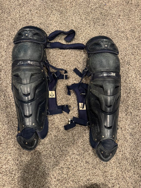 USED ALL STAR S7 ADULT CATCHERS LEG/SHIN GUARD NAVY 16.5