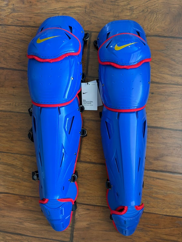 Nike Diamond Elite Catcher’s Leg Guards 17” Game Royal/University Red/Metallic Gold NEW