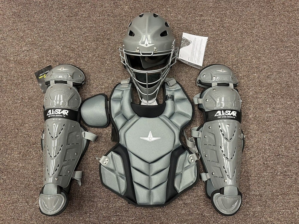 All Star Top Star Youth Ages 8-10 Baseball Catchers Gear Set - Graphite Grey