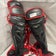 Used Mizuno SAMURAI Catchers Leg Guards Red Youth 11490-S000267516