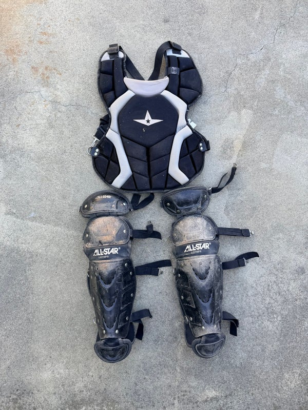 Comes with leg guards and chest pad. No helmet. Good condition. Used for a couple seasons. Plenty of life left. Perfect for 7- 11 year olds.