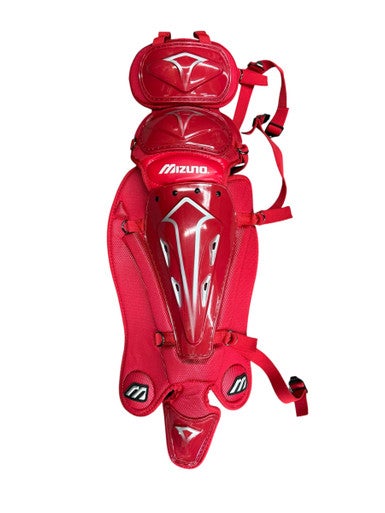 Used Mizuno SAMURAI Catchers Leg Guards Silver And Red Adult 11835-S000205215