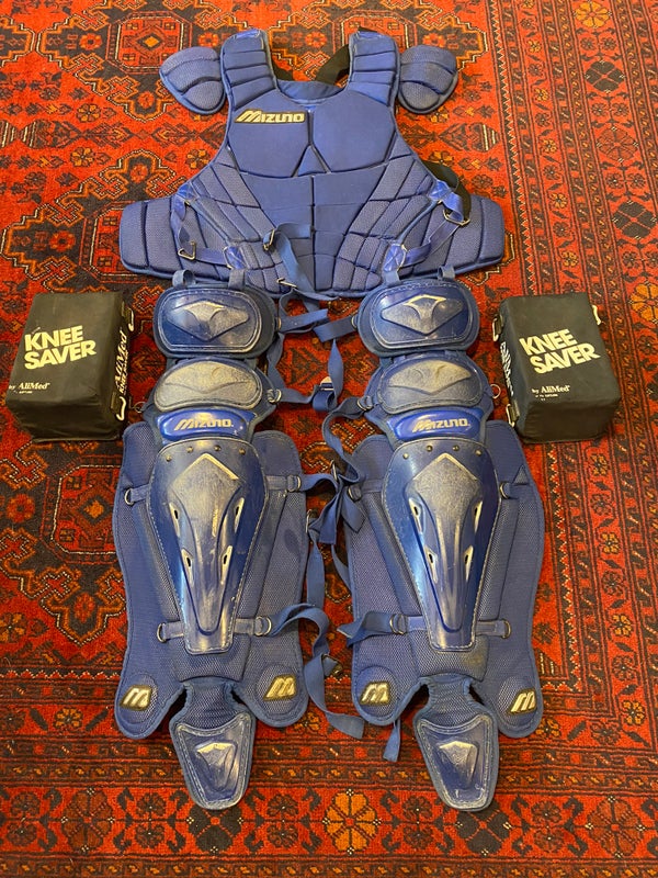 Used blue Mizuno catchers gear with knee savers that were barely used