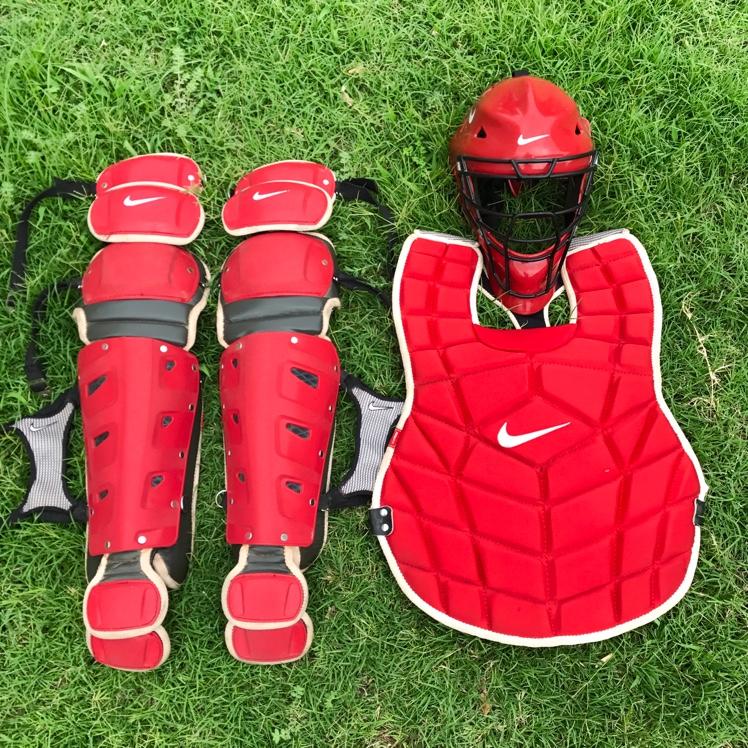 Up for sale is this phenomenal Nike Catchers gear set. It is lightly used & has some signs of wear in the knees but still has tons of life left. For sale only, no trades