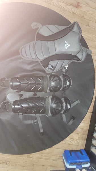 Good used condition baseball catching gear. Chest protector and shin guards. NO HELMET. Used 6 games tops