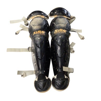 Used All Star SHIN GUARDS 9-12 Catchers Leg Guards Black Junior 11760-S000075914