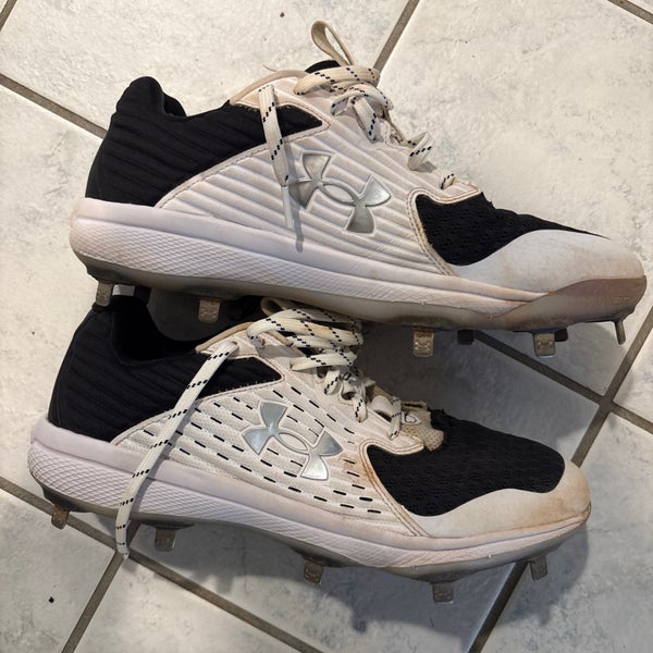 Under Armour Black/White Size 11 Yard Low Used Metal Baseball Cleats