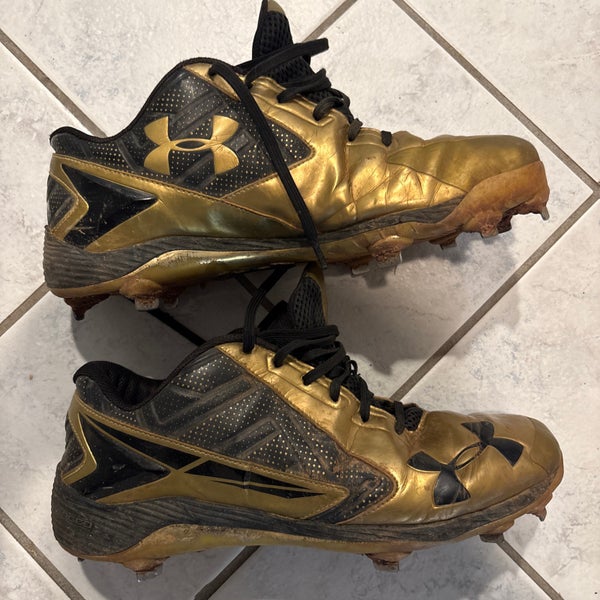 Under Armour Gold/Black Size 10 Baseball Used Metal Cleats