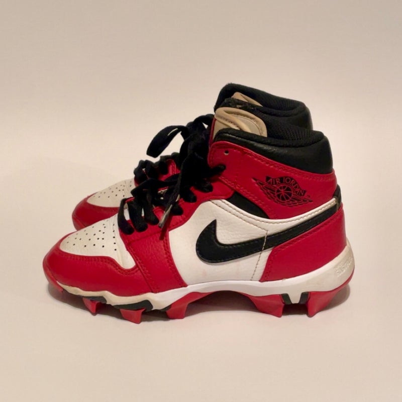 Used Nike AIR JORDAN BASEBALL CLEATS BB/SB Cleats White/Black/Red Junior SZ 1