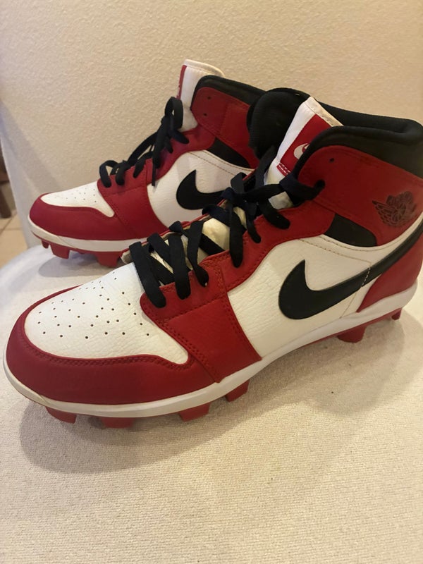 Red Men's Size M 10.0 (W 11.0) Adult Nike Air Jordan High Top Molded Cleats (Used)