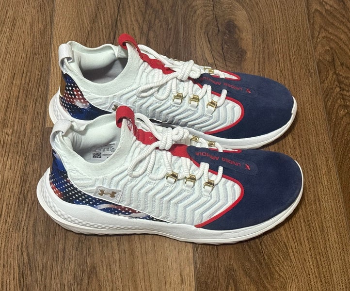 Under Armour Bryce Harper 9 Turf Shoes White Navy USA 3027440-101