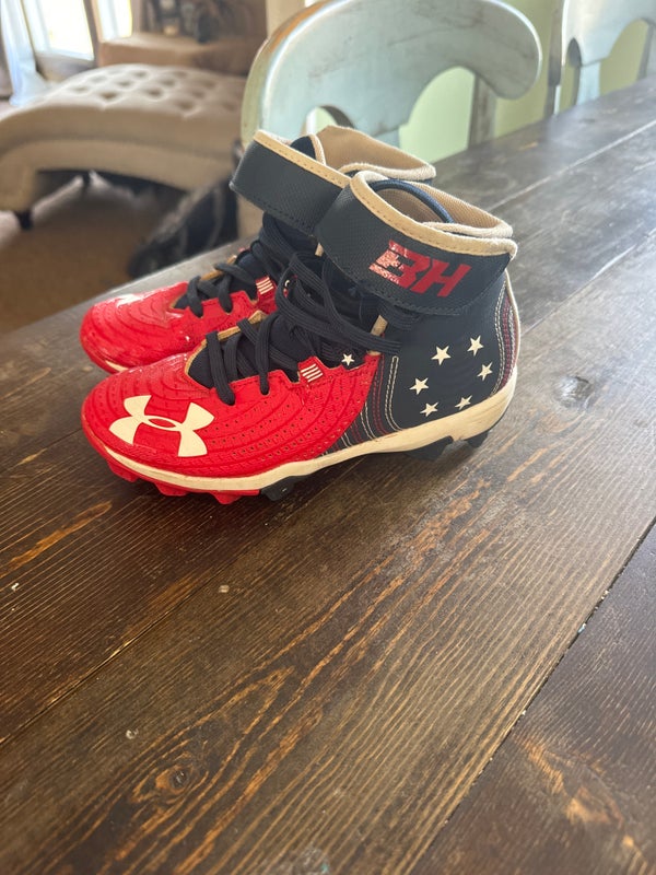 Red white blue kids 1Y (Big Kids / Youth) Youth Under Armour Bryce harper High Top Molded Cleats