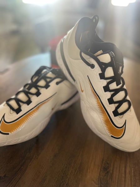 White/Gold Men's Size M 11.5 (W 12.5) Adult Nike Alpha Huarache Elite 4 Low Top Metal (New)