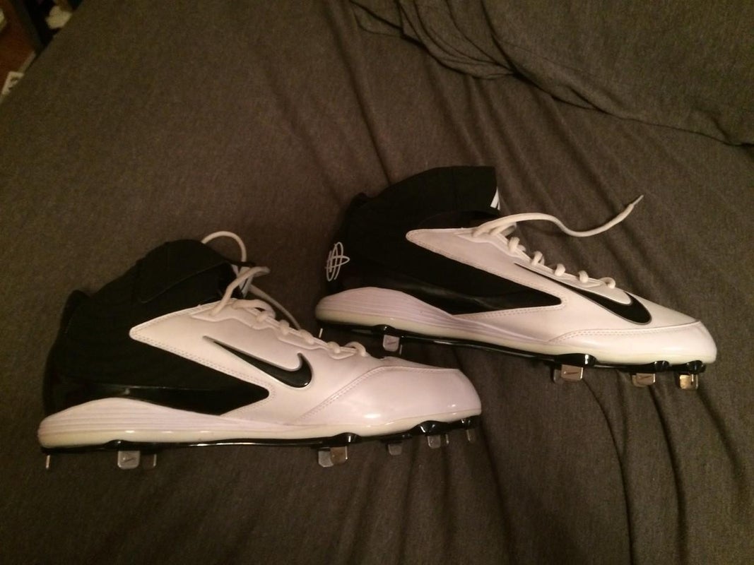 Very nice white and black Nike huts he cleats these are great cleats they are just way to big they have never been worn they are size 13.