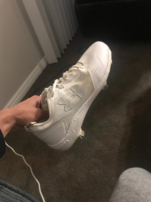 Retail price: $60.00White Men's Size M 9.0 (W 10.0) Youth Under Armour Low Top Molded Cleats (Used)