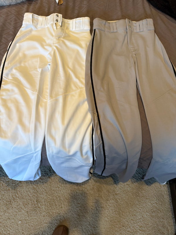 Gray & White Men's Small Adult Alleson Game Pants (New, no tags). Both pairs have Velcro at bottom