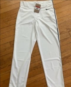 White Men's Large Youth Nike Game Pants (New) With Navy Blue Piping