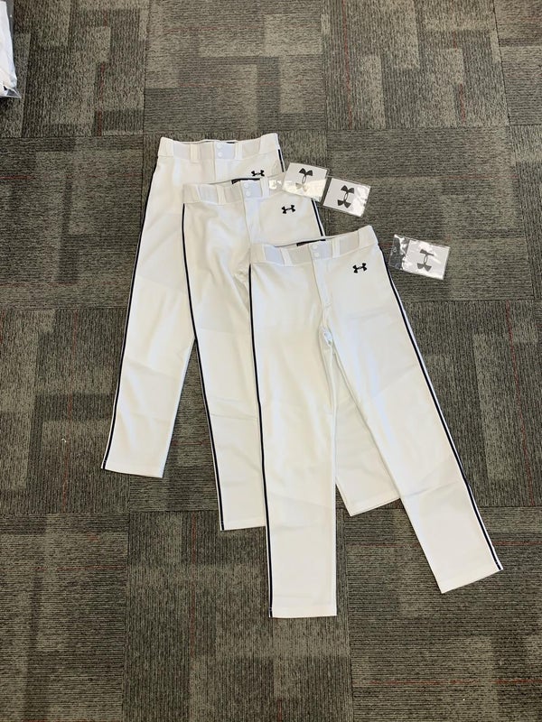 White Unisex Medium Youth Under Armour tapered piped Game Pants (Used)