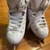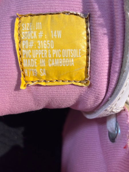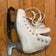 These Riedell Figure Skates are a Junior size 11 and have been gently used as my daughter's second pair. Riedell is known for their quality, making these skates a comfortable option for beginners. Currently, she is on her third pair of Riedell Pearls, which speaks to their reliability. The skates show some signs of wear, including a blue marking along the side from practice sessions and two missing pearls from the laces. I've included photos to give you a clear view of their condition. If you have any questions or need additional information, feel free to send me a message.