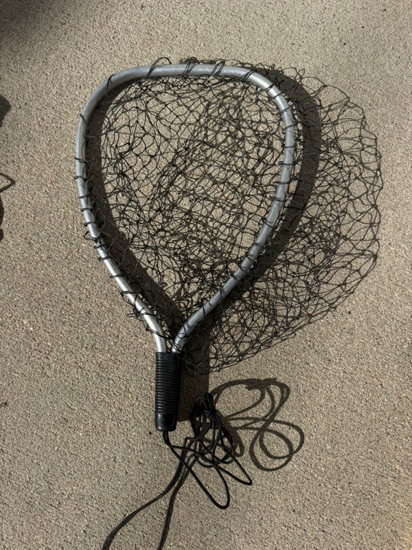 Vintage 19" HUNT WILDE Nylon fishing net, aluminum frame & 22" elastic lanyard