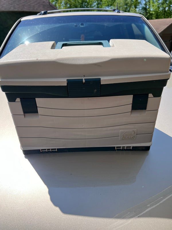 Tackle box is used but very well taken care of and still looks brand new. It will come with the random lures and hooks in the top compartment.
