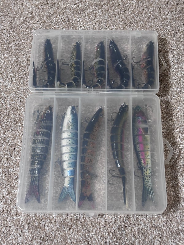 New 8-Segment Swimbait Lures – 10pcs w/ 2 Storage Boxes