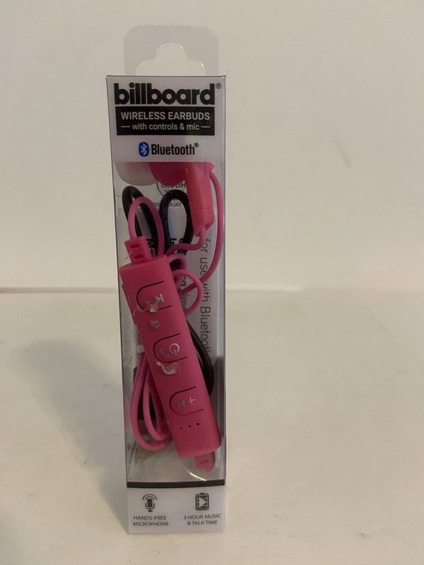 Billboard Bluetooth Wireless Earbuds with Controls & Mic 3 Hr. Music Pink BB2423