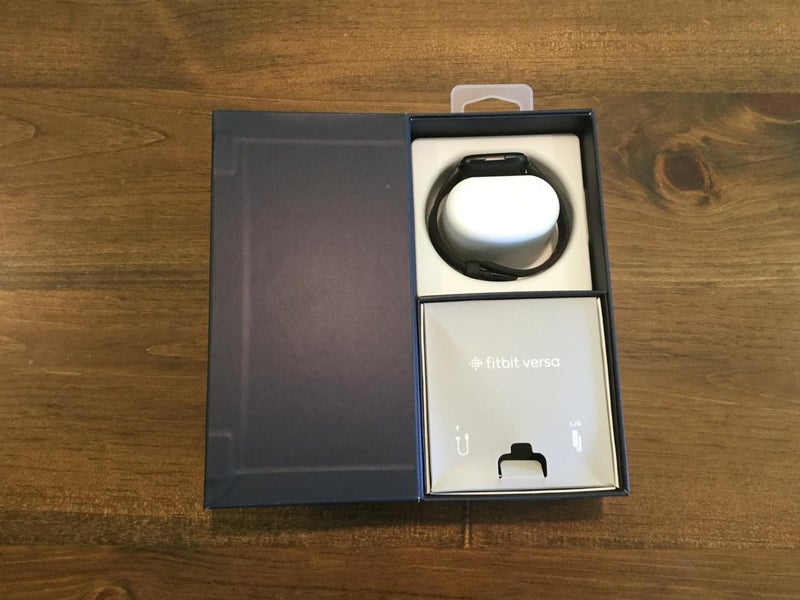 Fitbit VERSA Watch. Fully functional. Used condition. Includes charger and two bands (small and large). Smaller band and watch face slightly scratched due to regular use. Larger band never used. Will factory reset prior to shipping. FLU SYMPTOM-FREE HOME.