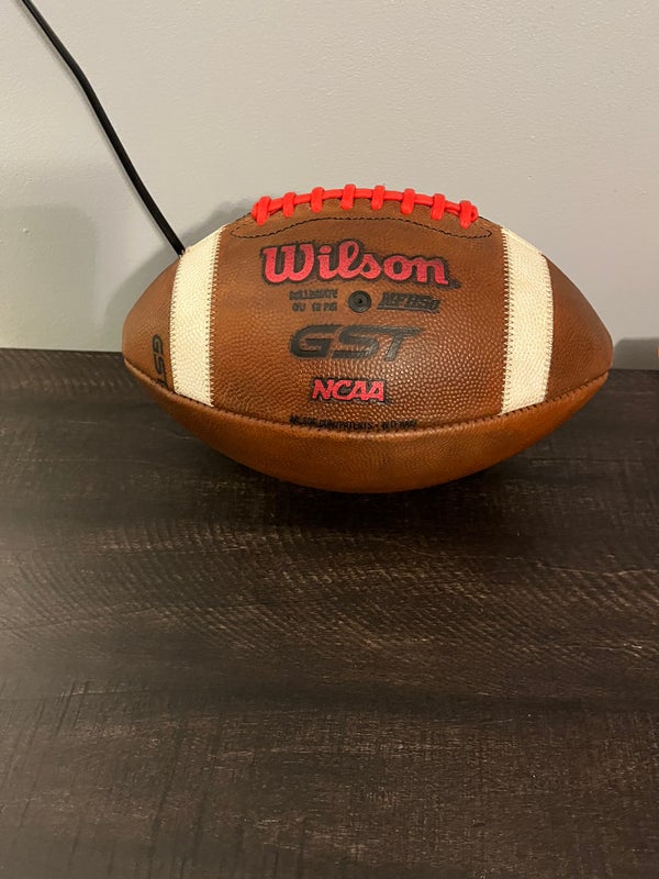 The Wilson GST Football is designed specifically for competitive play at all levels, featuring a patented Accurate Control Lacing System that delivers optimal grip and precision passing. This model is constructed with premium leather, providing a soft feel and durability while the fully prepped surface ensures excellent grip in all weather conditions. The deep pebble texture enhances handling, making it easier for quarterbacks and receivers alike to maintain control during gameplay. This football is new and has never been used.